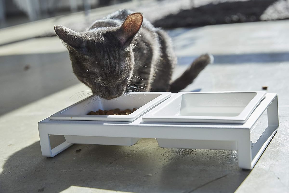 山崎実業らしさが出たシンプルでスタイリッシュなフォルムの上、カラーもホワイトでお部屋のインテリアの邪魔をしないところと、犬、猫の食事の際の首にかかる負担軽減を考慮したスタンドタイプになっているところが気に入りしました。スタンドフレームの材質も安っぽくなく、錆にも強そうで長く使える商品が気に入ってます。